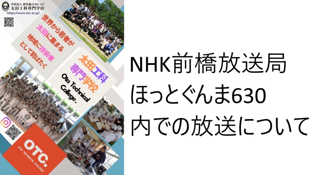 NHK前橋放送局のほっとぐんま630の番組内で太田工科専門学校の就職への取り組みや授業の様子が放送されました。 11月12日(水)午後7:00までNHKのサイトで見られますので、よろしければ御覧ください。 https […]